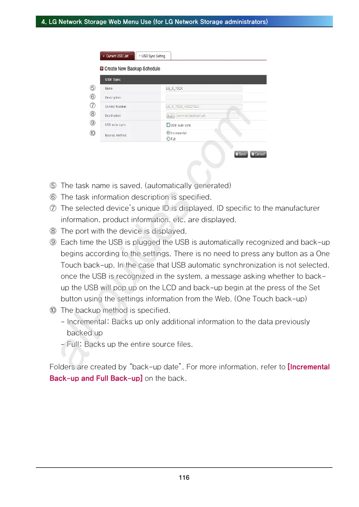 Folders are created by “back-up date”. For more information, refer to [Incremental