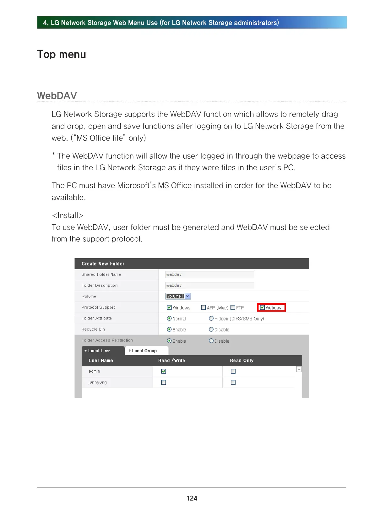 . LG Network Storage Web Menu Use (for LG Network Storage administrators)