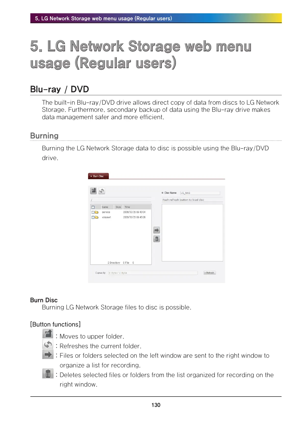 Burning the LG Network Storage data to disc is possible using the Blu-ray/DVD