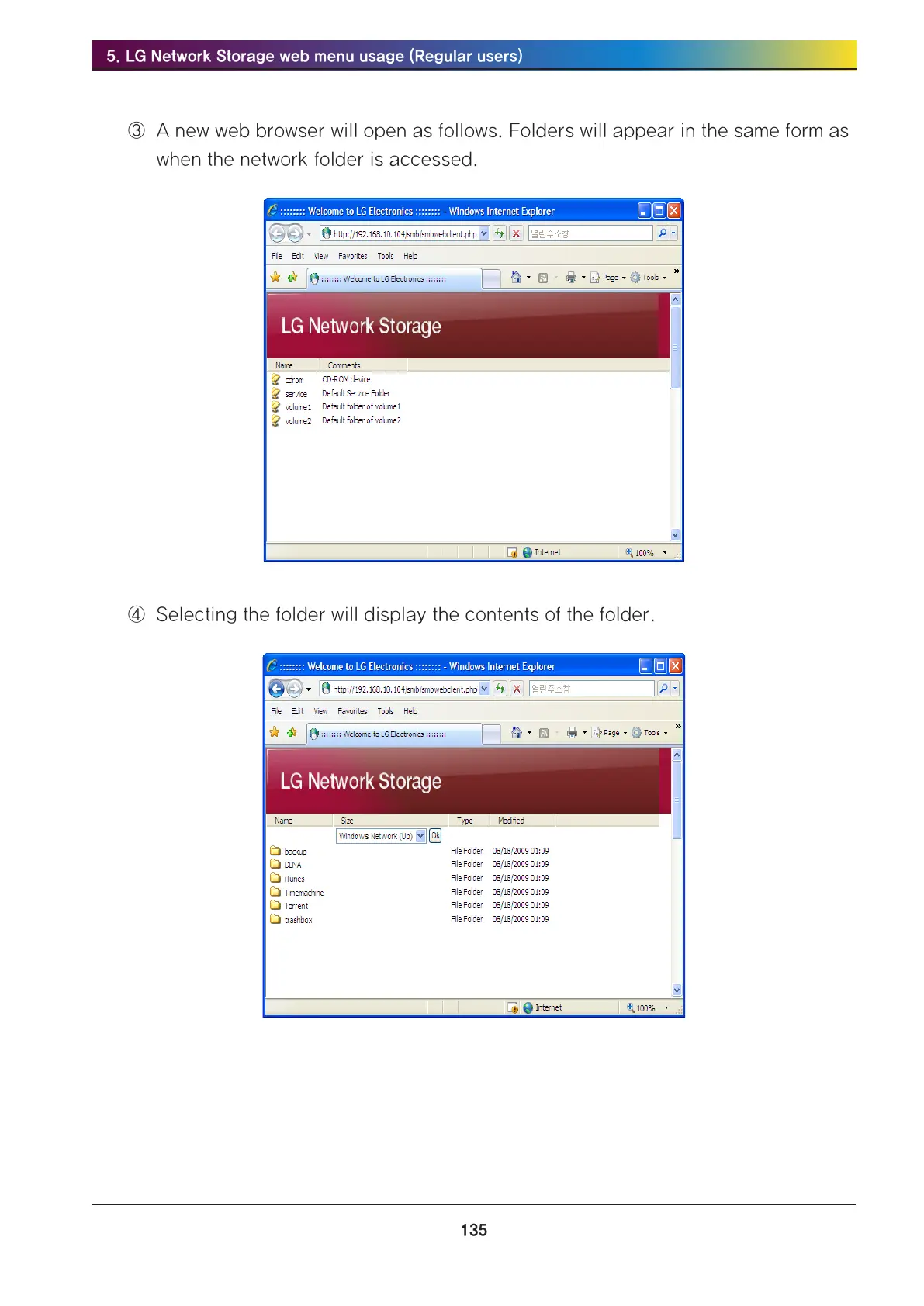 . LG Network Storage web menu usage (Regular users)