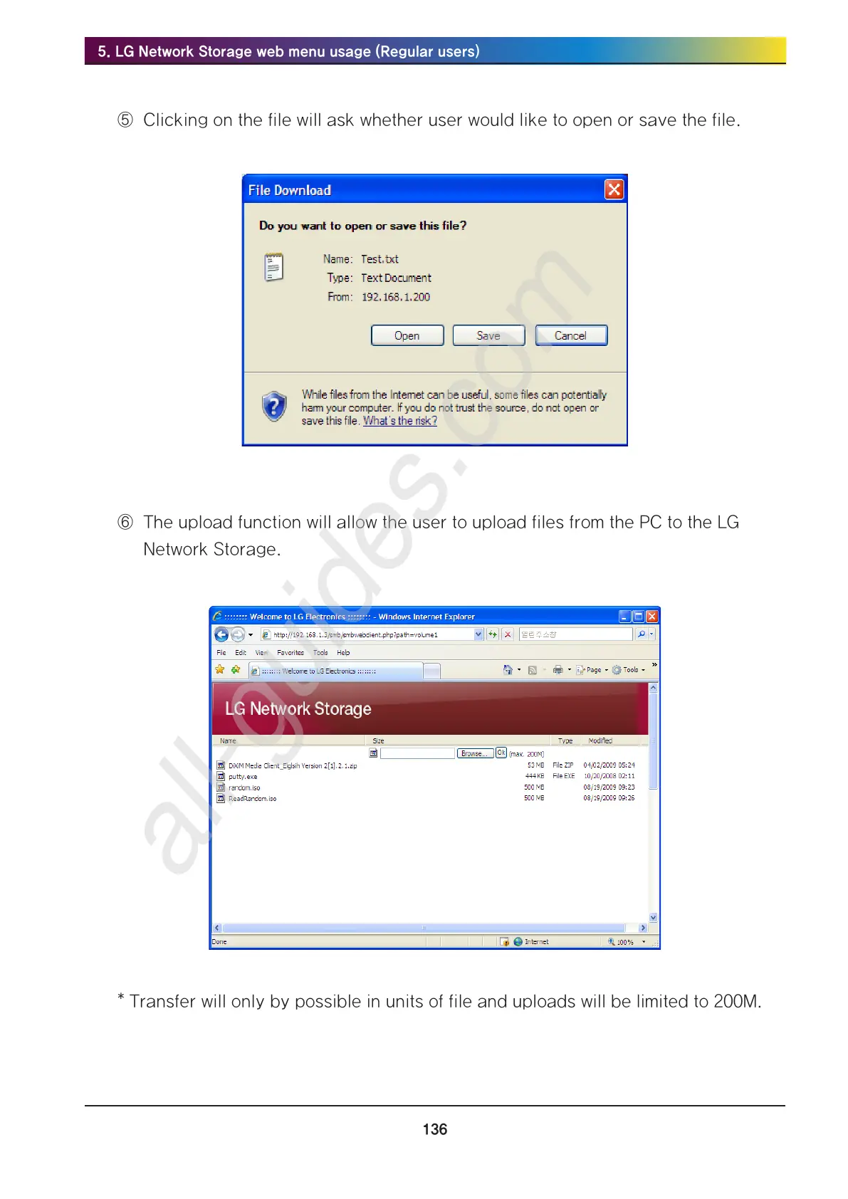 The upload function will allow the user to upload files from the PC to the LG