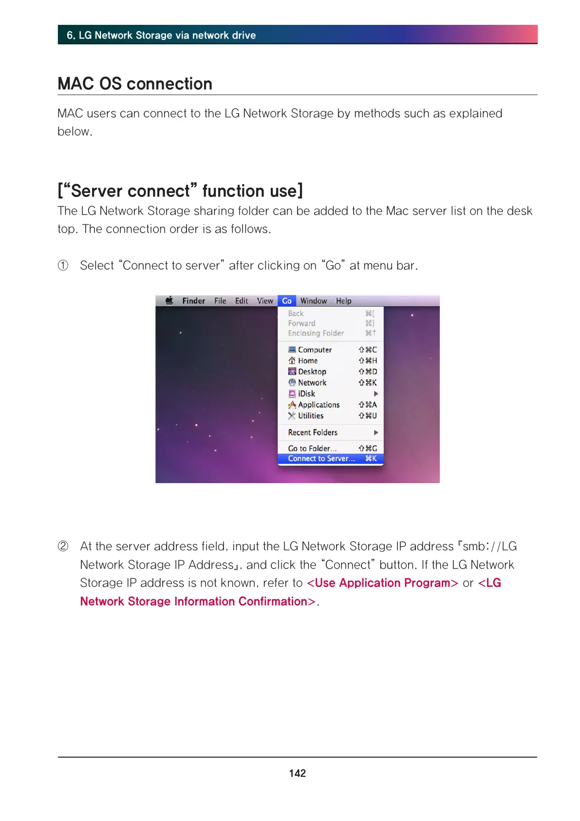 Network Storage IP Address』, and click the “Connect” button. If the LG Network