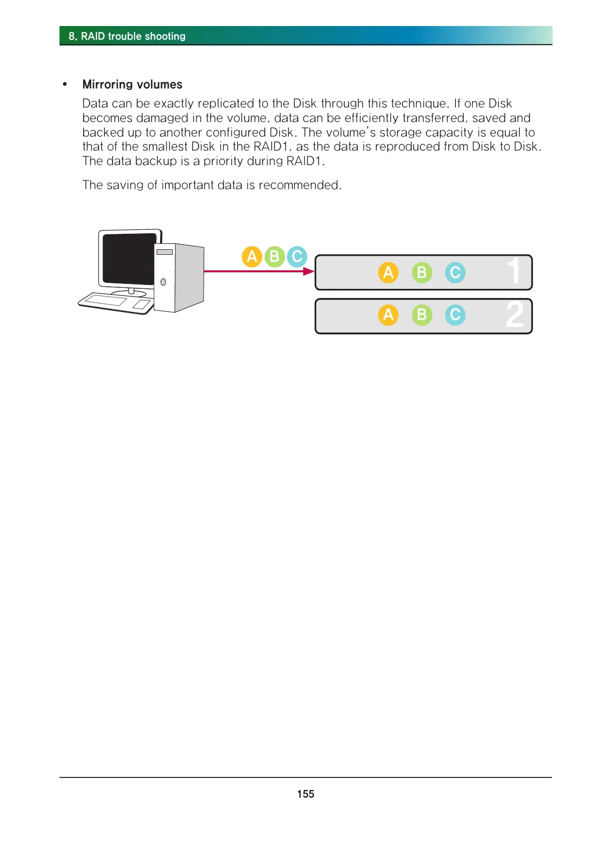 backed up to another configured Disk. The volume’s storage capacity is equal to