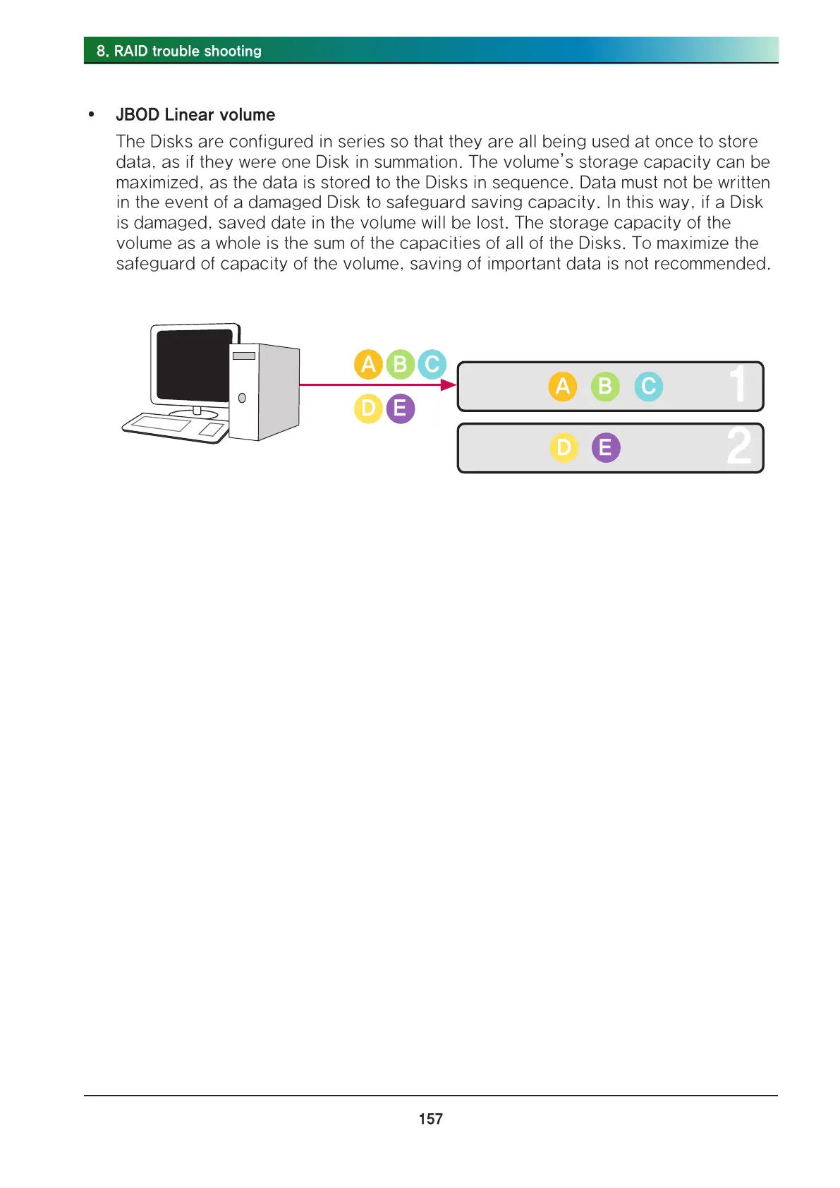 data, as if they were one Disk in summation. The volume’s storage capacity can be