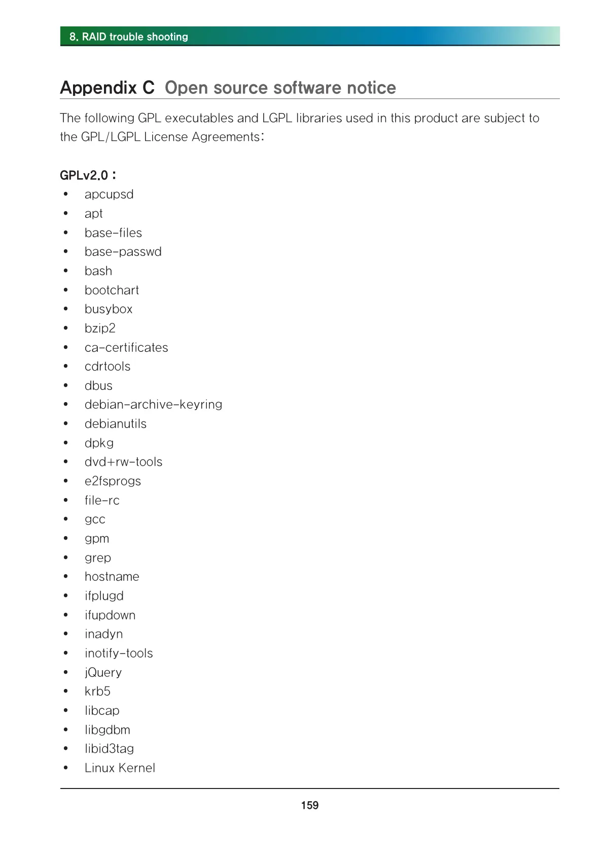 Appendix C Open source software notice