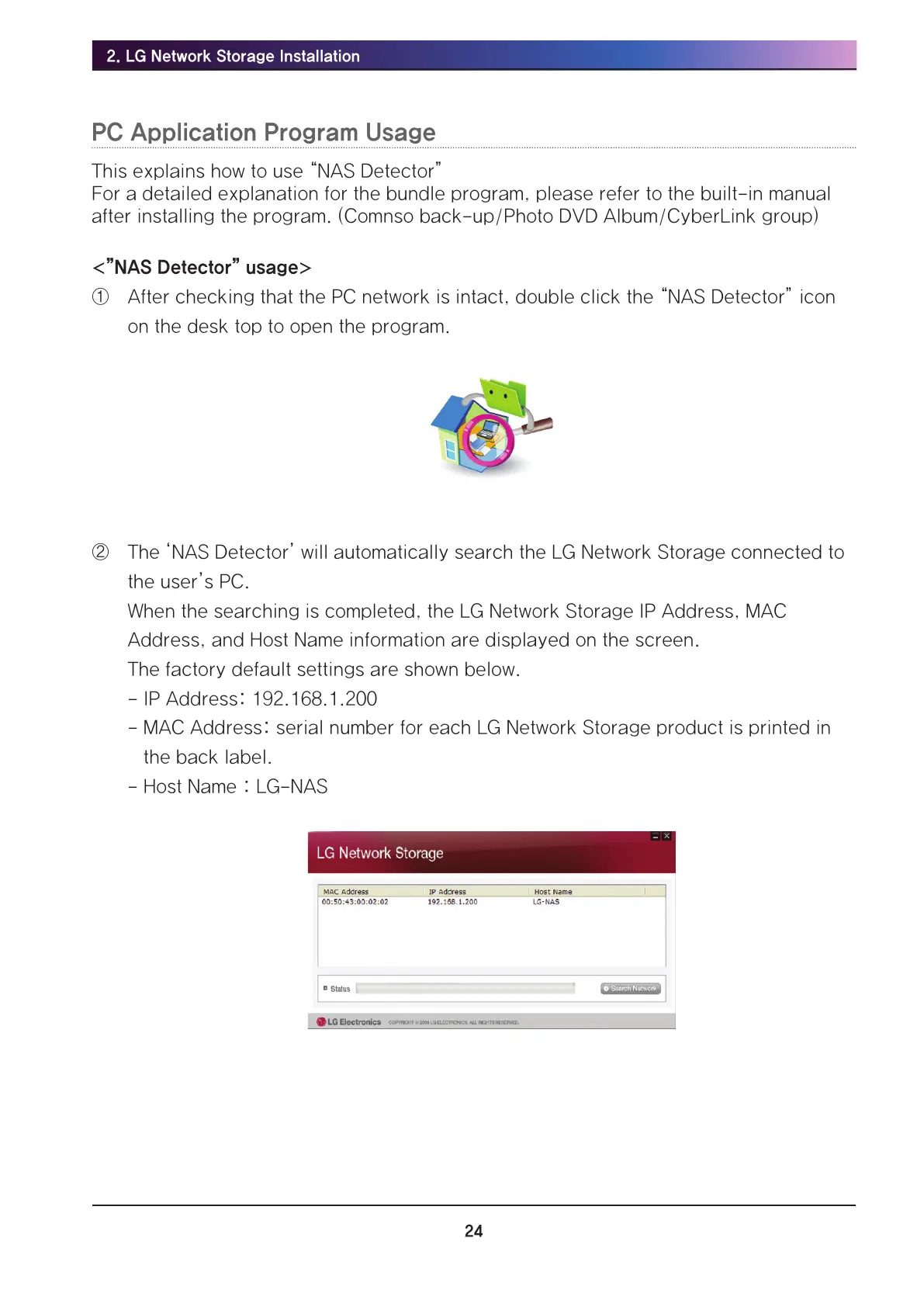 ② The ‘NAS Detector’ will automatically search the LG Network Storage connected to