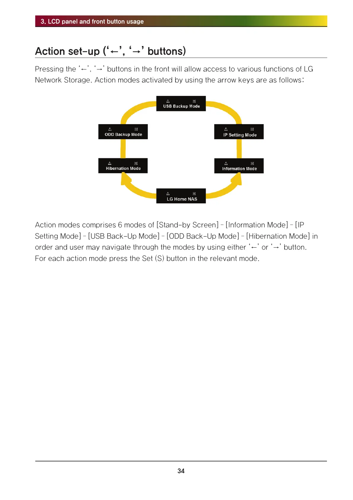 Network Storage. Action modes activated by using the arrow keys are as follows: