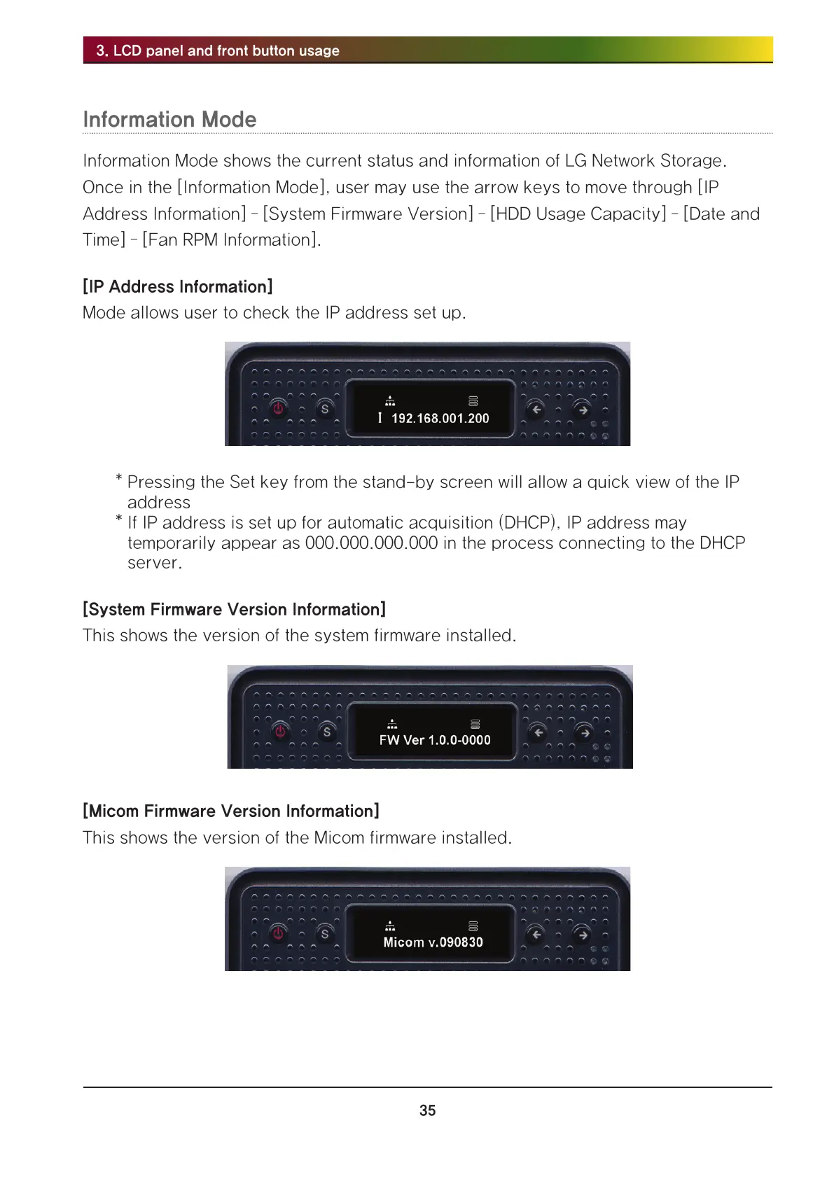 Once in the [Information Mode], user may use the arrow keys to move through [IP