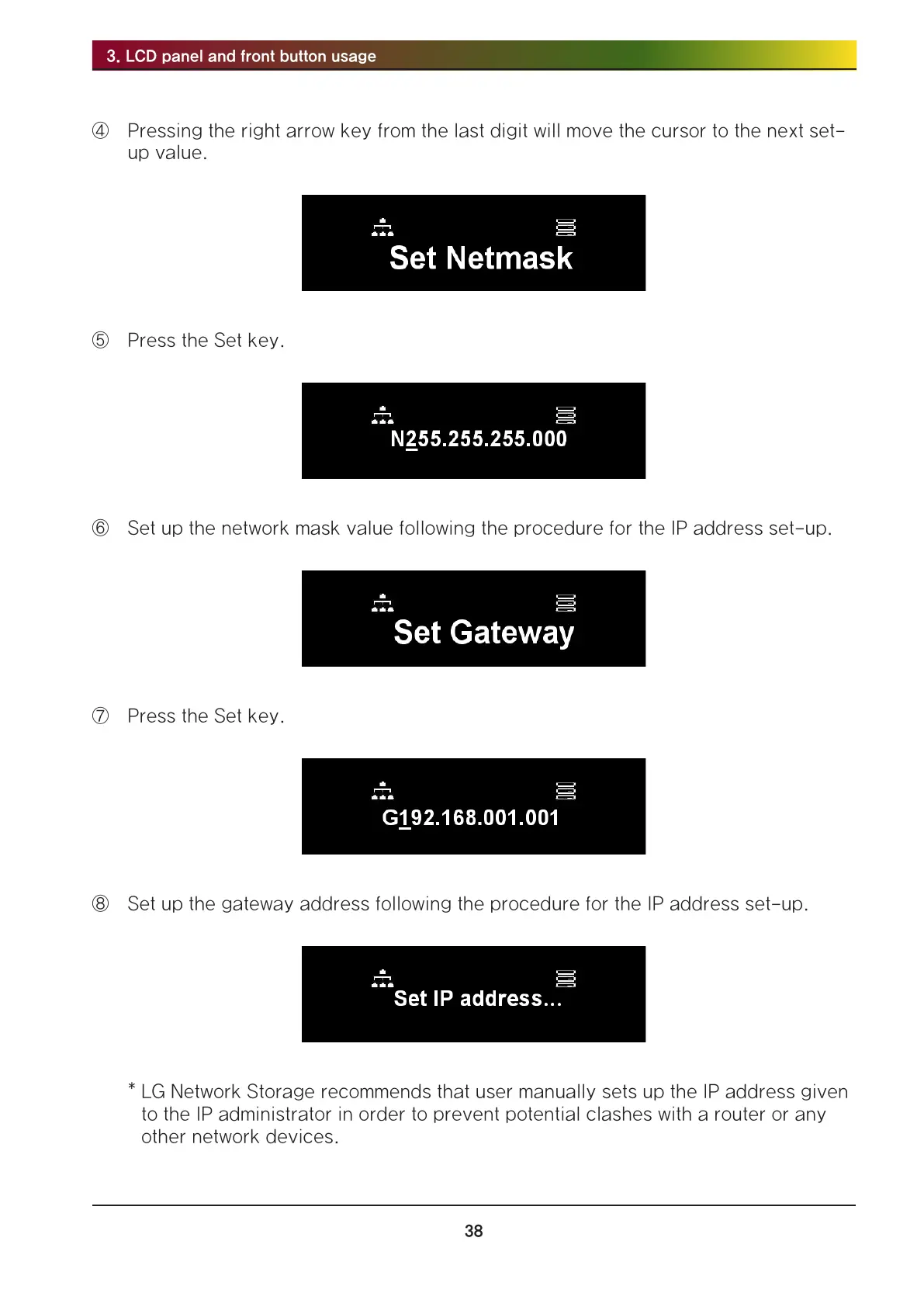 ⑥ Set up the network mask value following the procedure for the IP address set-up.