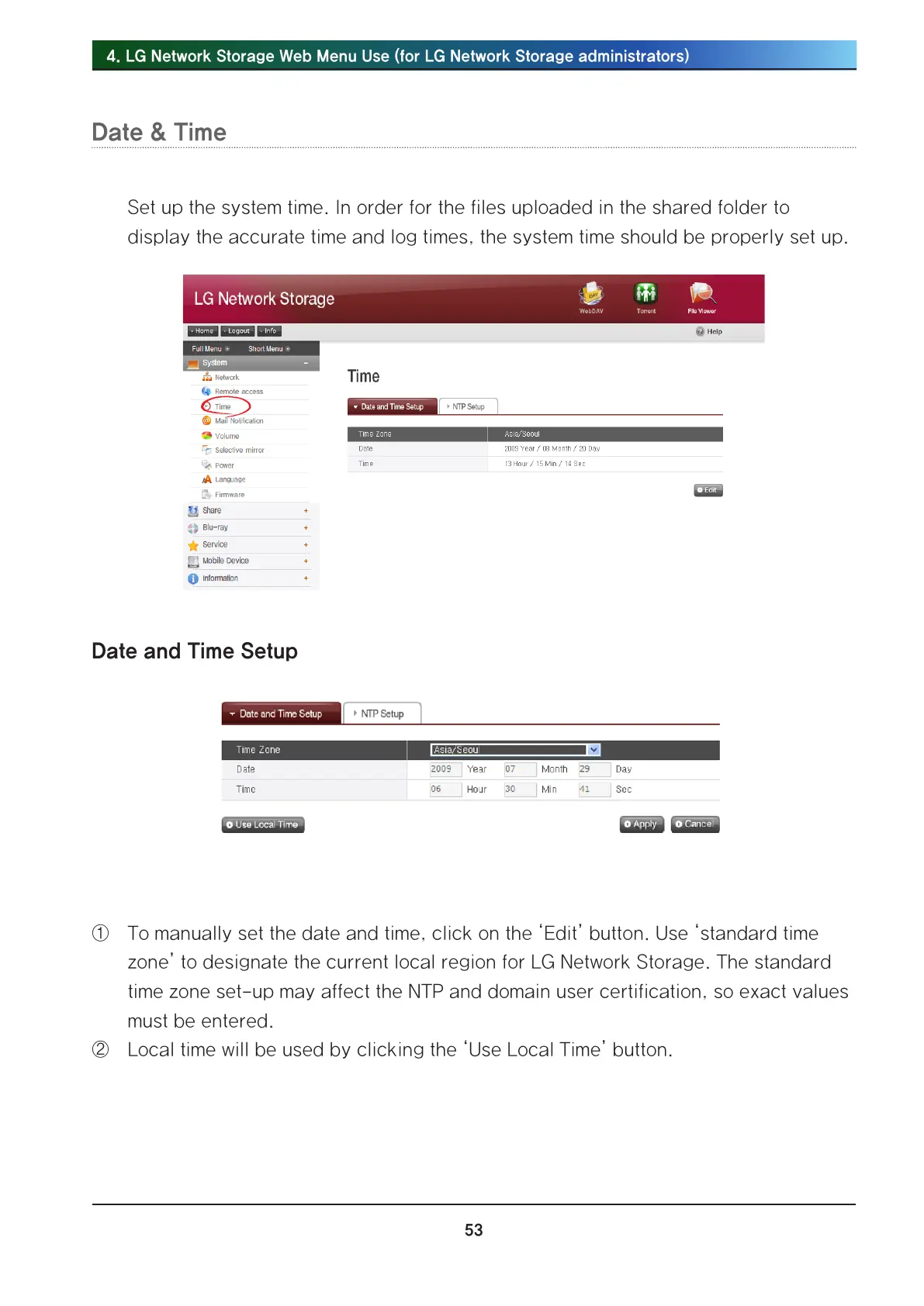 . LG Network Storage Web Menu Use (for LG Network Storage administrators)