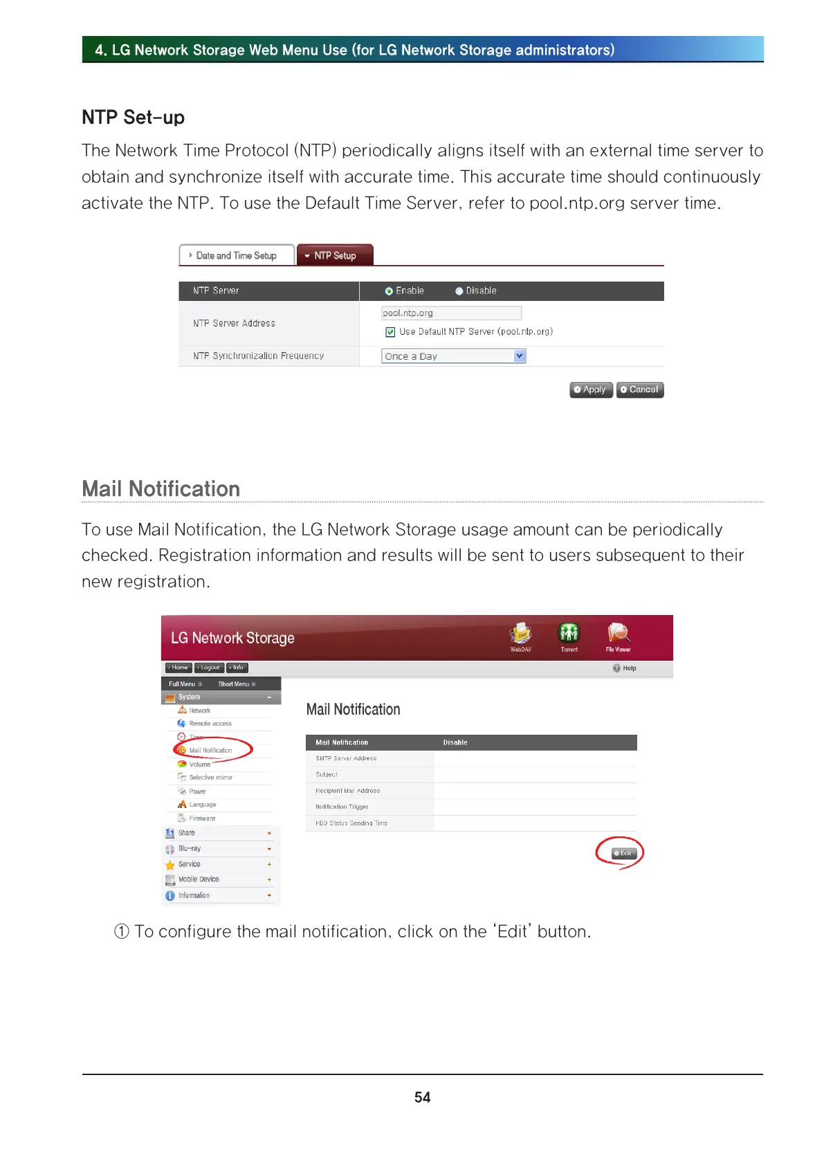 . LG Network Storage Web Menu Use (for LG Network Storage administrators)