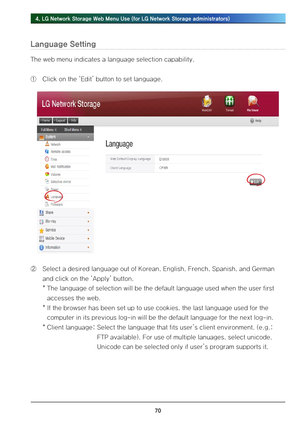 . LG Network Storage Web Menu Use (for LG Network Storage administrators)