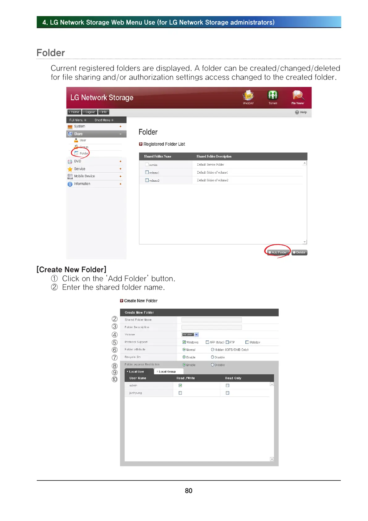 . LG Network Storage Web Menu Use (for LG Network Storage administrators)
