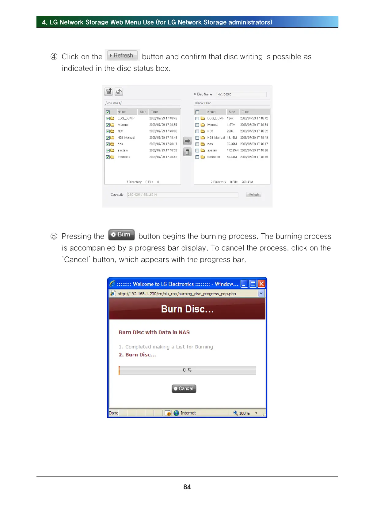 . LG Network Storage Web Menu Use (for LG Network Storage administrators)