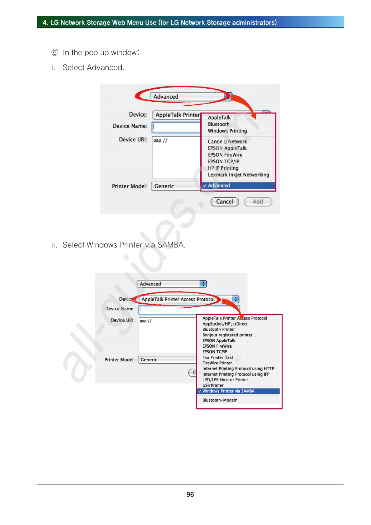 ii. Select Windows Printer via SAMBA.