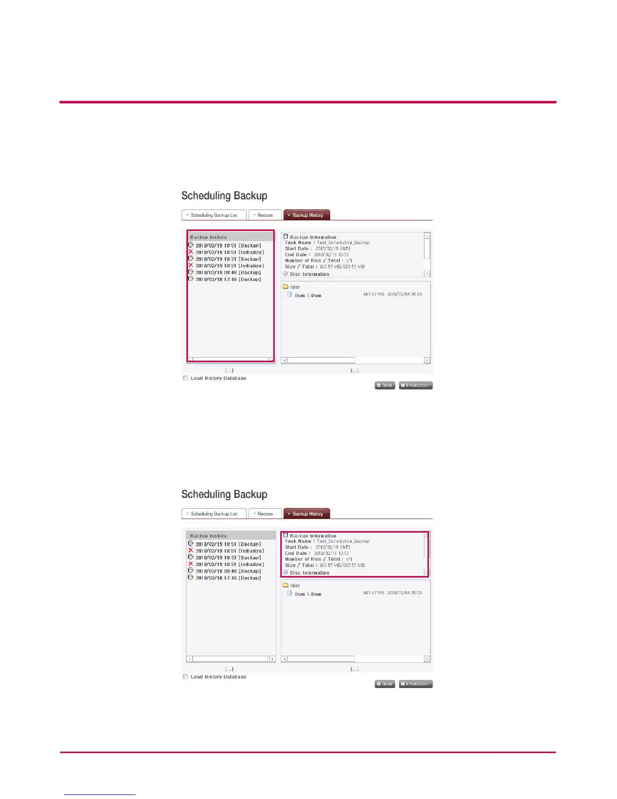 You can see information on backup and initialization history from ‘Backup History’ tab.
