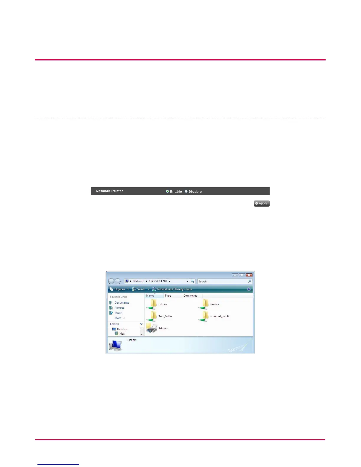1 In the web menu go to “Enable” to connect the network printer, after which an LG