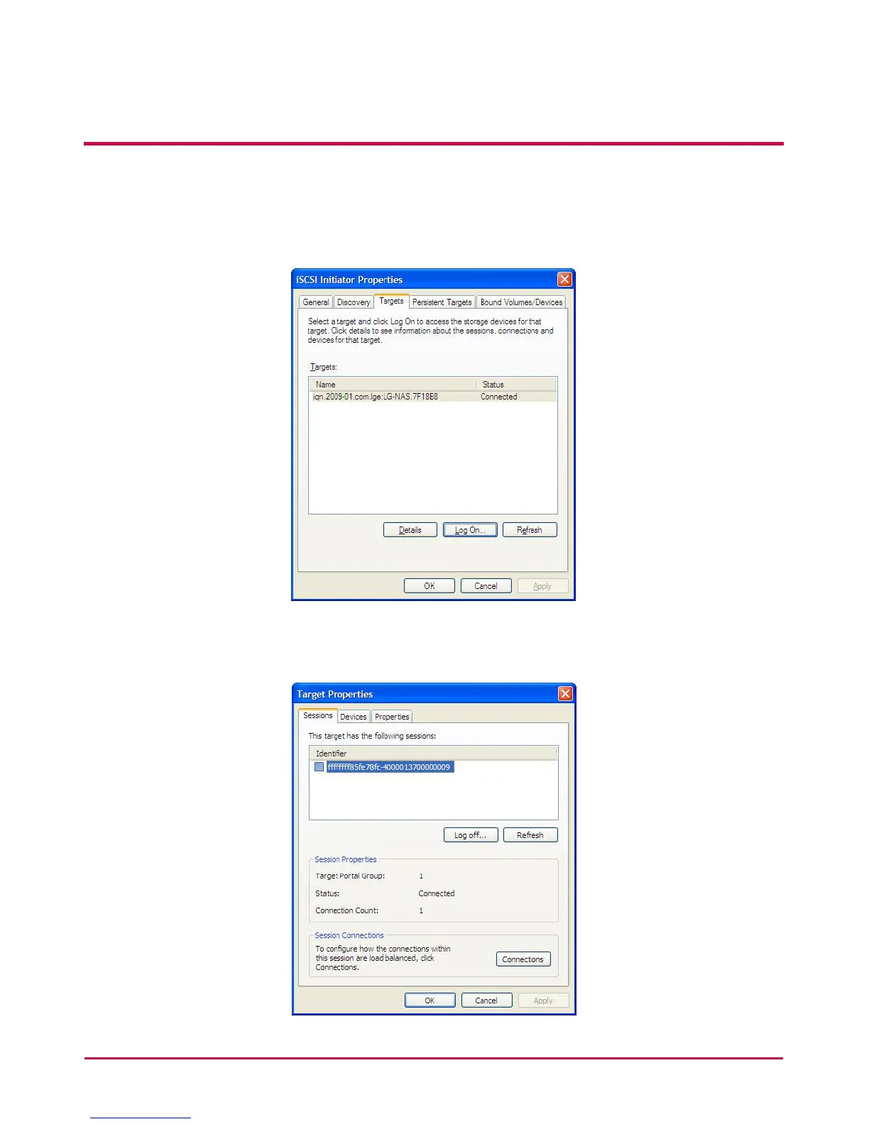 Go to the Targets tab on the top of the iSCSI Initiator program. Then click on the