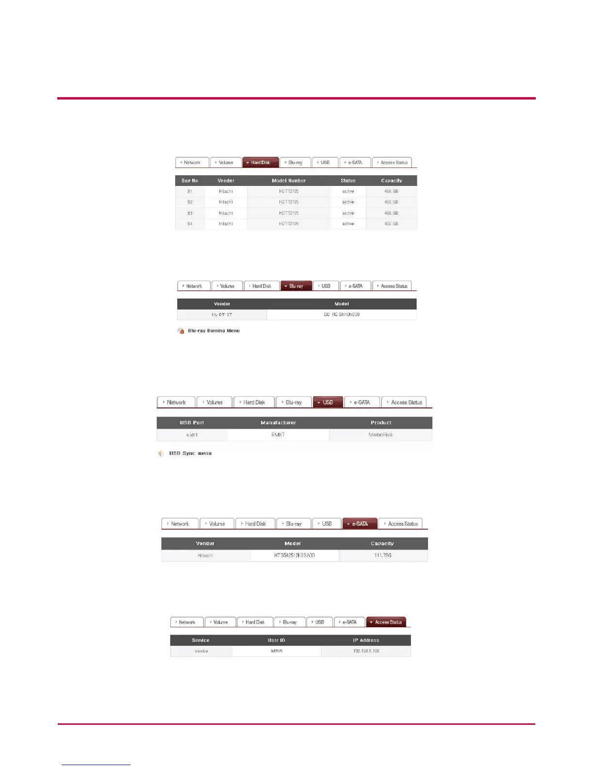 3 All hard disk information connected to the LG Network Storage can be viewed by Bay