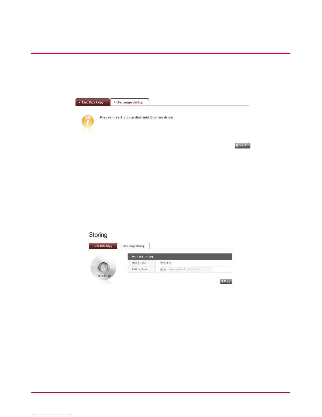 1 Insert the data disc in to the Blu-ray / DVD Drive and press the ‘Next’ button. If the disc