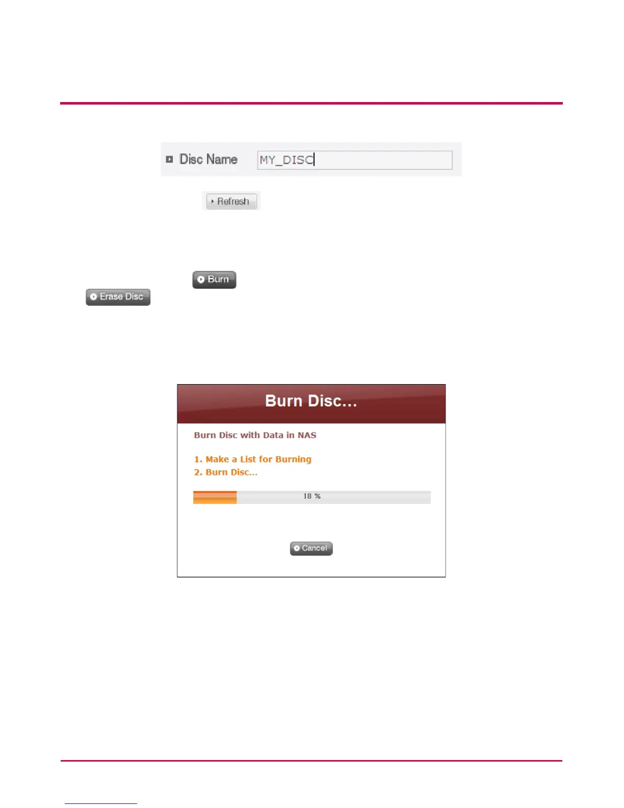 6 Pressing the ‘Burn’ button begins the burning process. Press ‘Erase Disc’