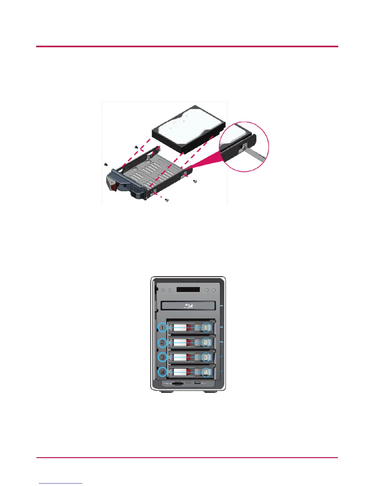 5 Match the hard disk rack label number and the NAS front panel number, to insert the