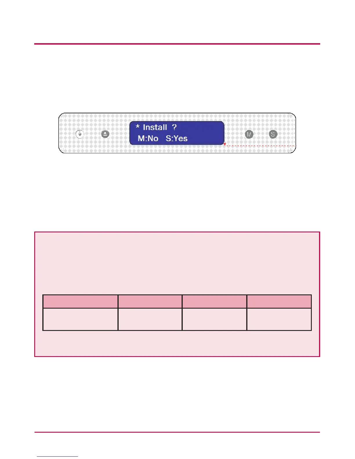 5 After 1 minute, the following two messages appear. Click on ‘SET’ and select ‘S:YES’