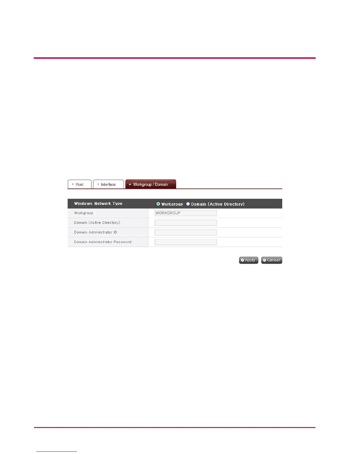 2 When selecting ‘Workgroup’, input workgroup name required. Or when selecting