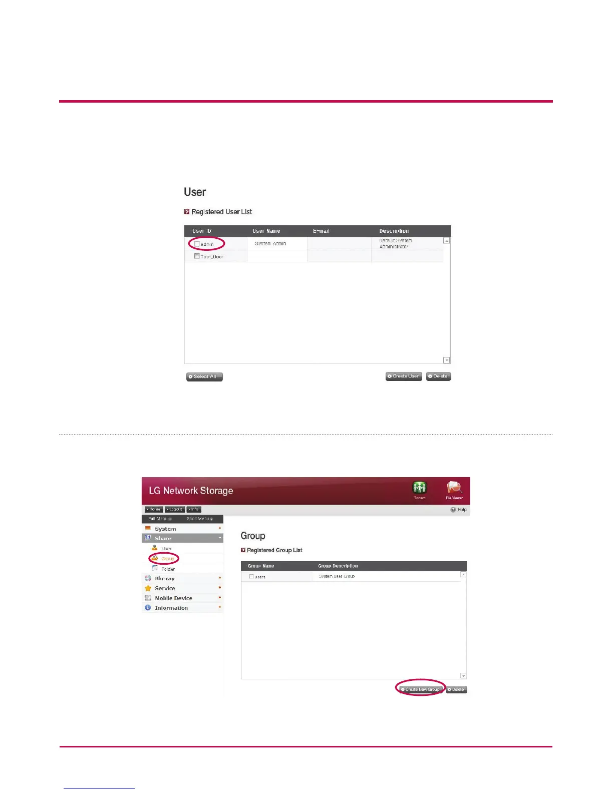 Current registered groups are displayed. Groups can be created and deleted, as well as the