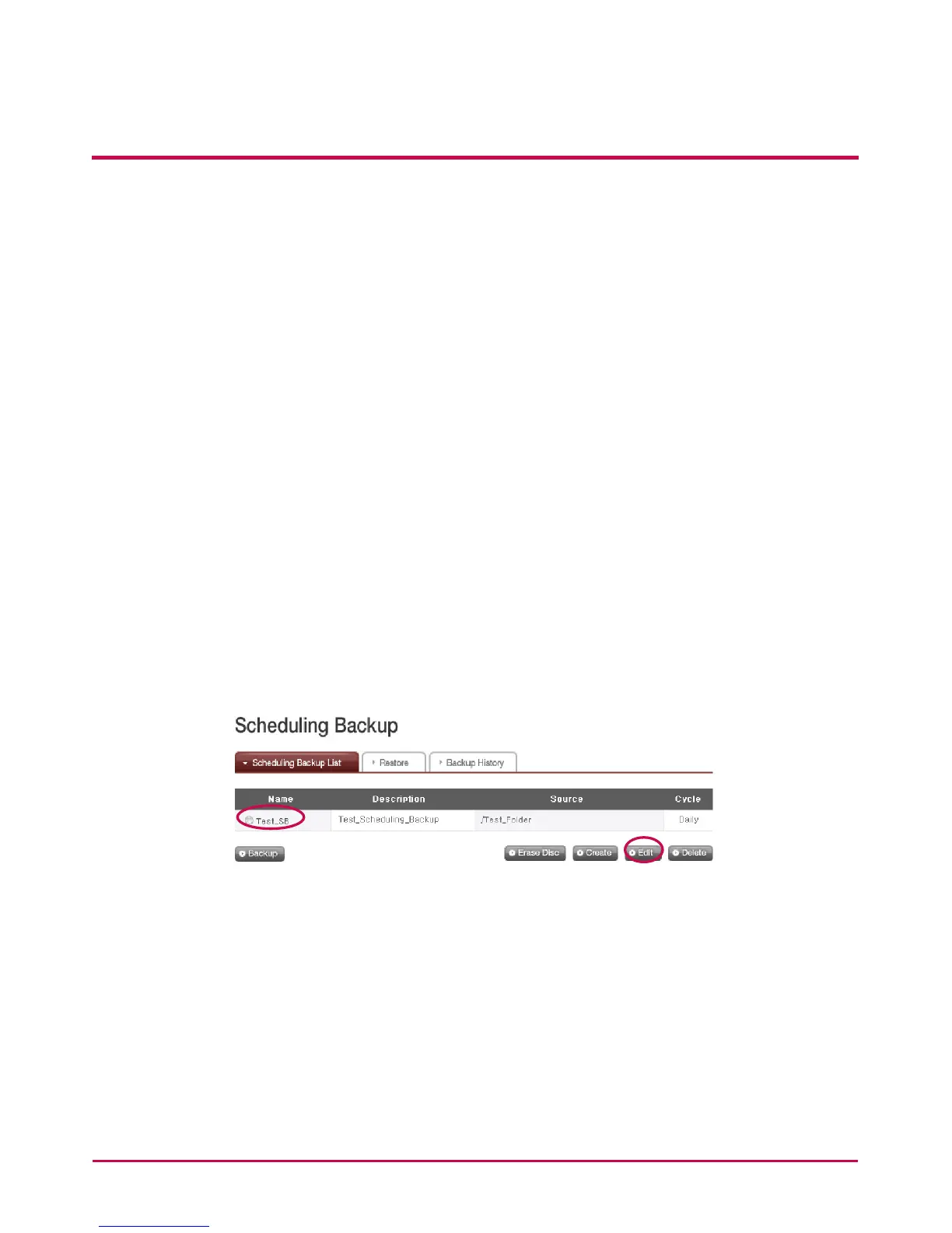 Select a backup schedule to be edited from the backup schedule list and click the ‘Edit’
