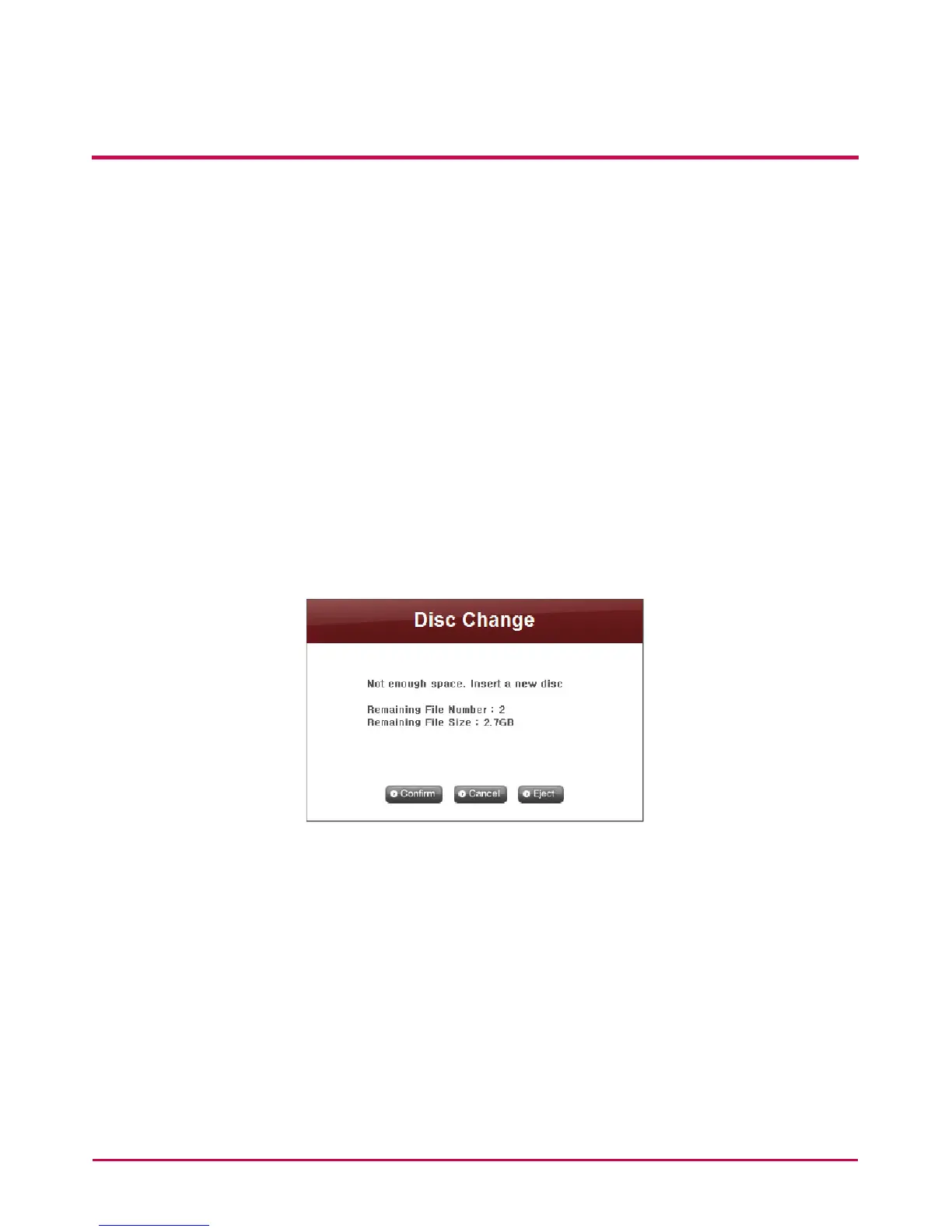 size of the remaining les to be backed up on ‘Disc Change’ screen, insert a new disc and