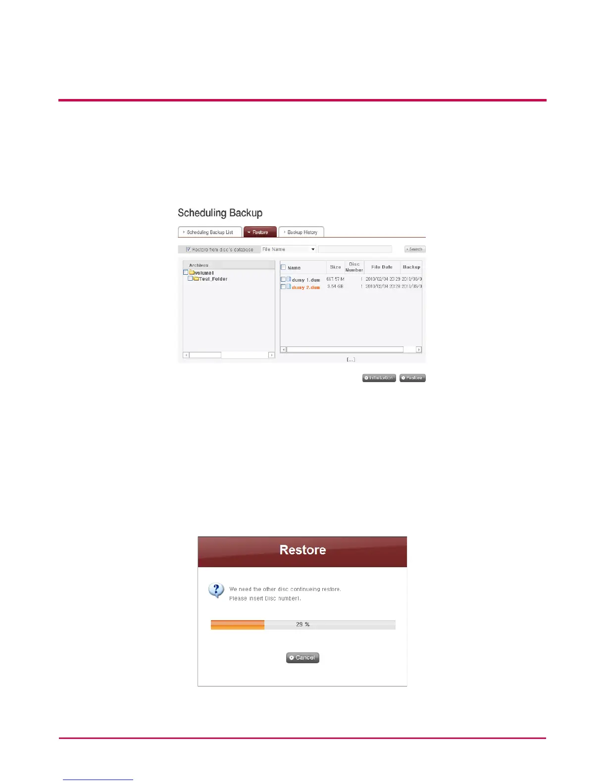 the backup schedule database from the disc. Click ‘Conrm’ button when a warning that