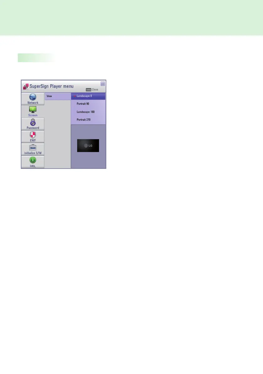 In the Screen Setting menu, you can choose the screen view type. The type is set to Landscape 0 by default.
