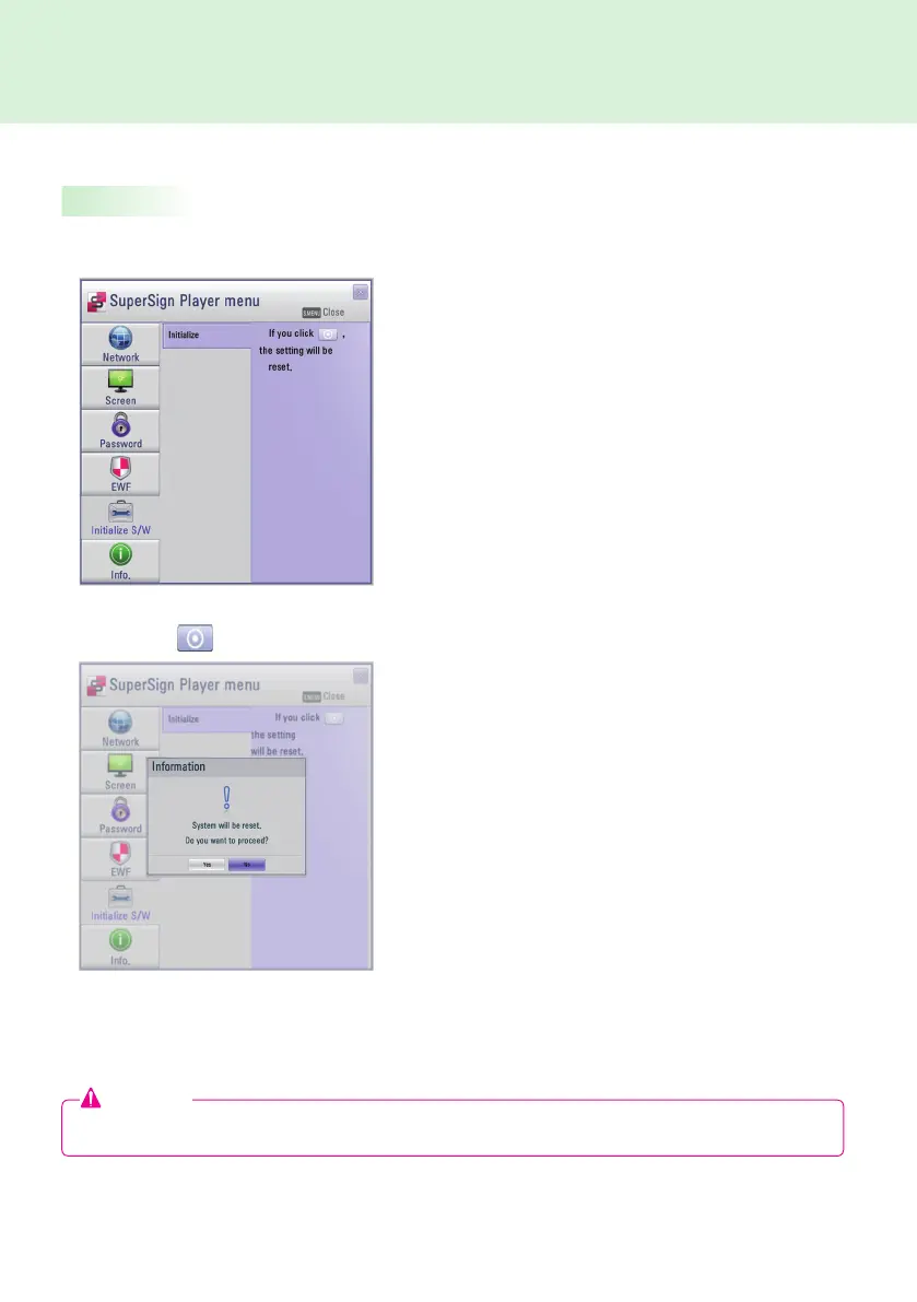 The Initialize S/W menu allows you to initialize the SuperSign Player settings.