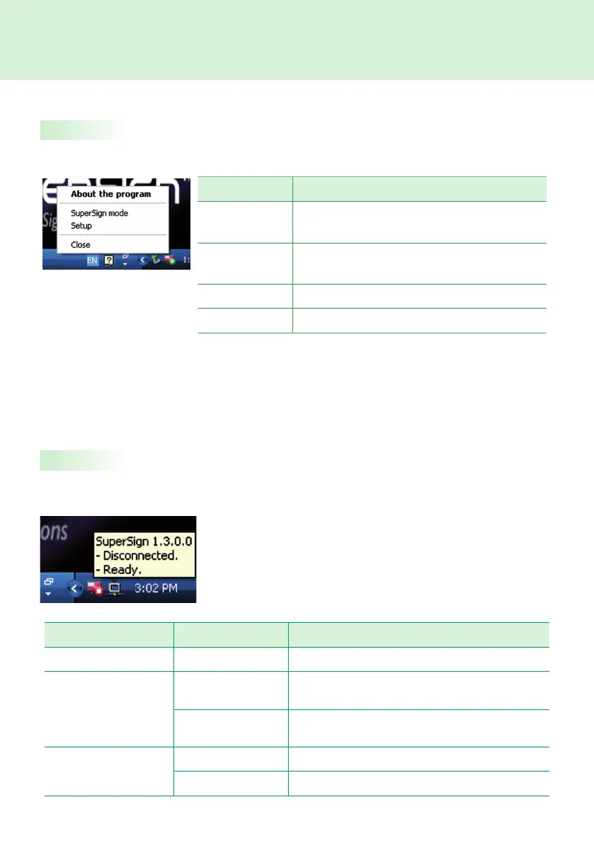 When you move mouse over the SuperSign Player tray icon, the program summary information will be