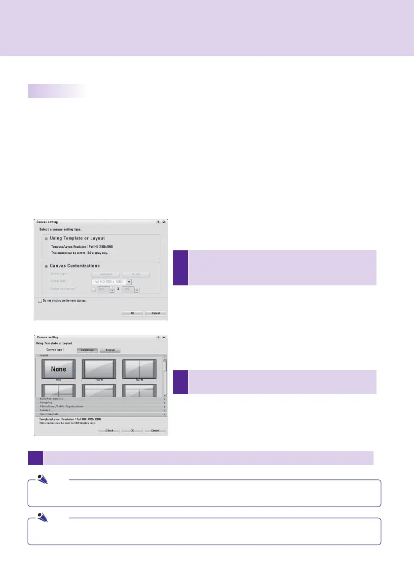 The following shows the steps to select a template or layout in the <Canvas setting> window.