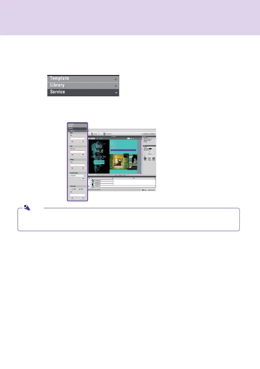 Click Library > Service on the media window to launch the menu for adding content as shown below.