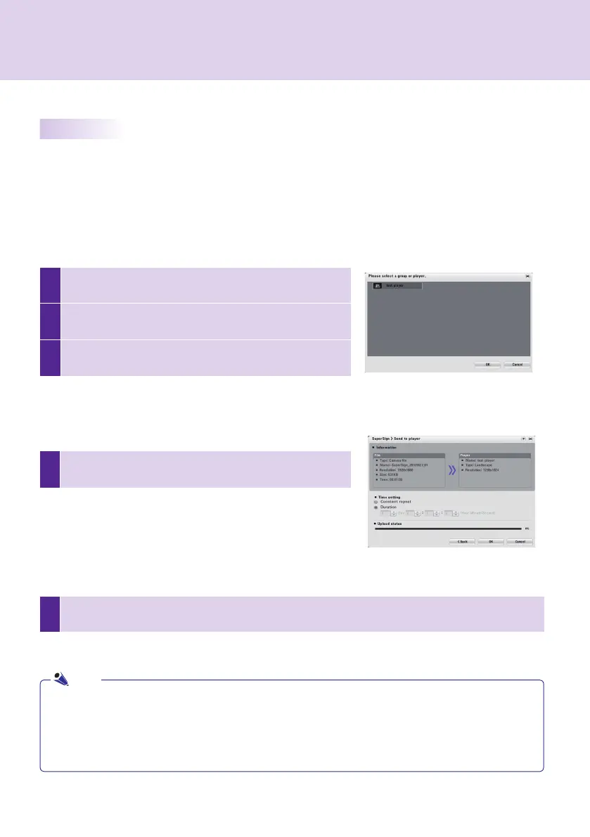 ● If you send the content using Send to player, the content schedule previously sent will be ignored.