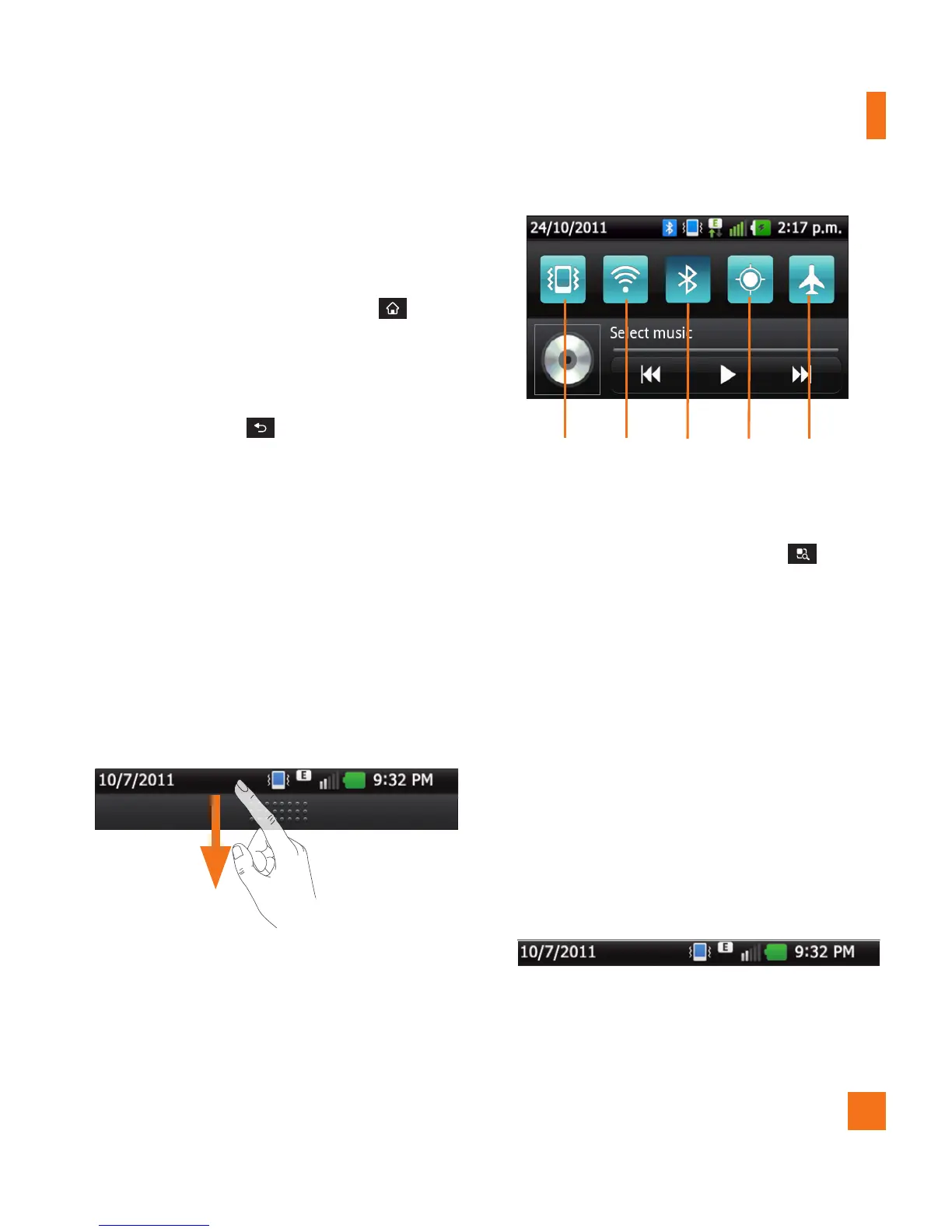 Touch and hold the Status Bar and slide