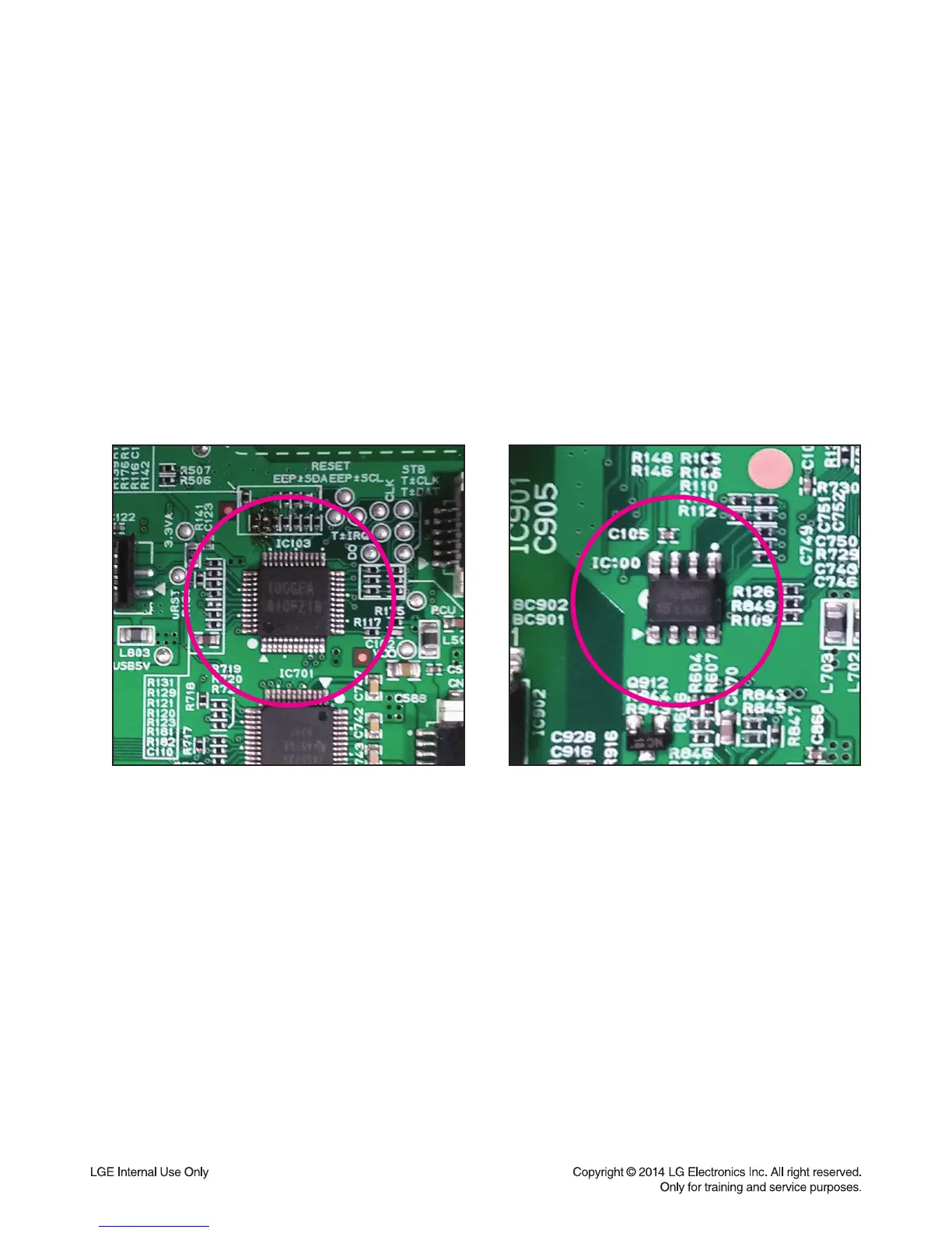 3) If 3.3 VA of IC103 Pin48 (VIN) is OK, check the EEP_CLK (Pin1), EEP_DAT (Pin2) signal.