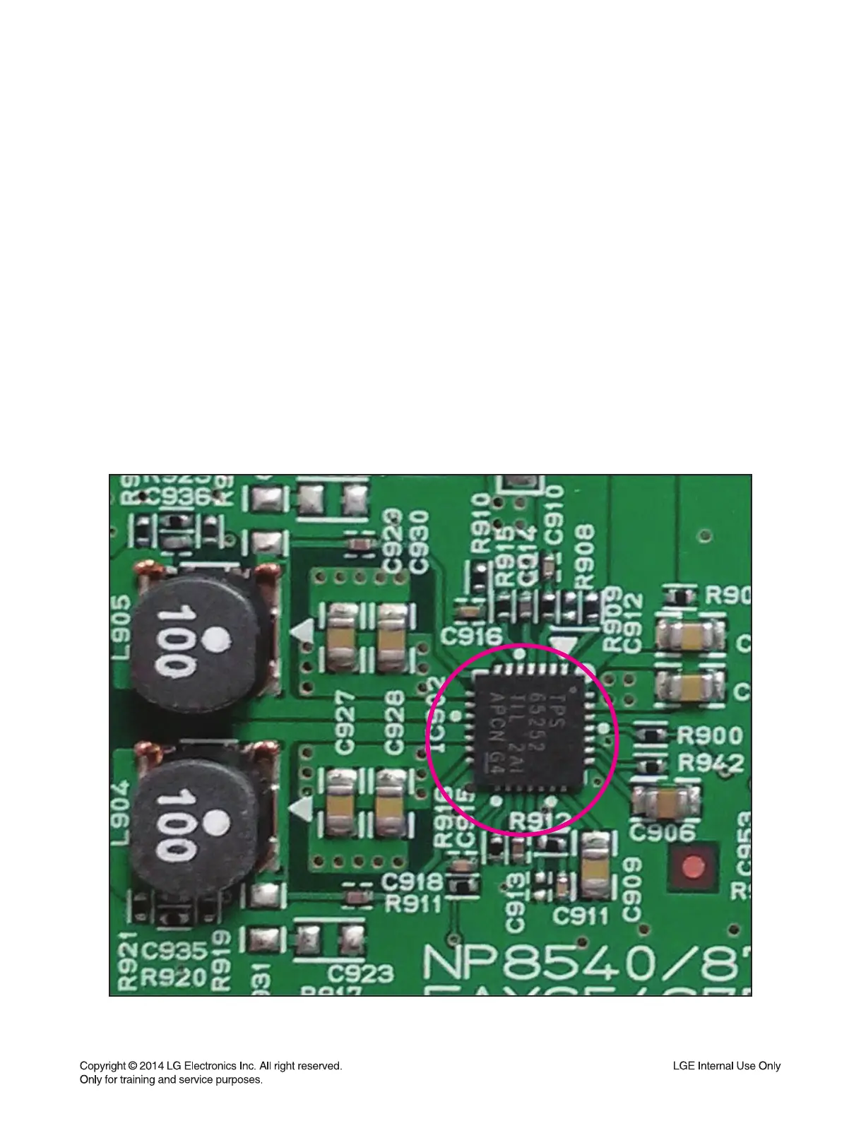 C914, C916, C929, C930, C936, C941, C946, C949) and if there’s no defective component, replace IC902.