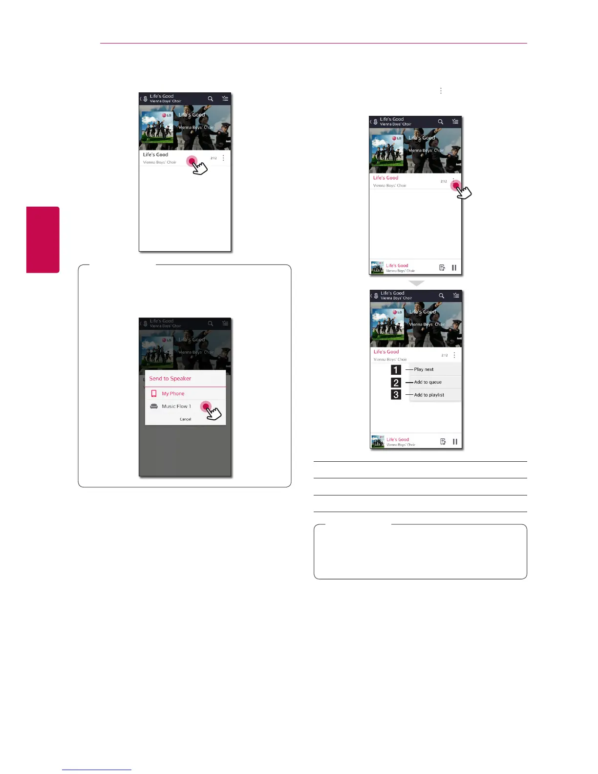 Play next – Selects music to play next.
