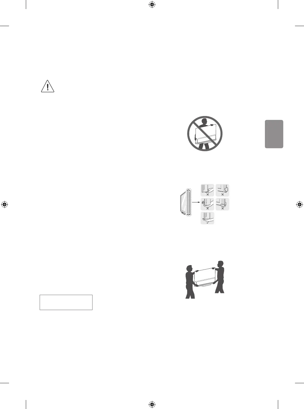 • Lorsque vous transportez la TV, tenez-la comme indiqué sur