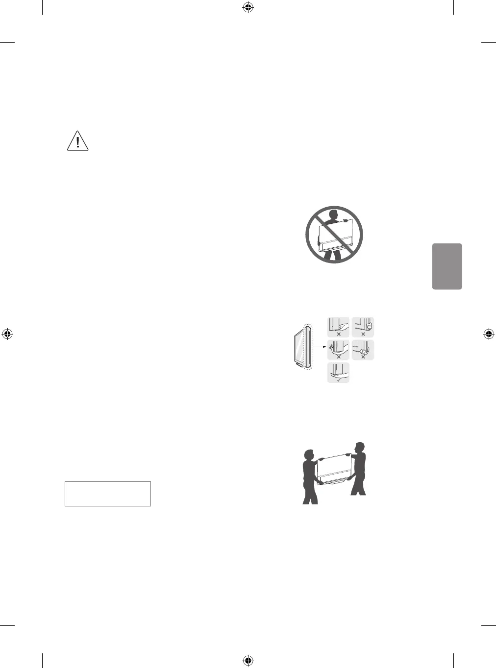 • Cuando transporte la TV con las manos, sujétela como se muestra en