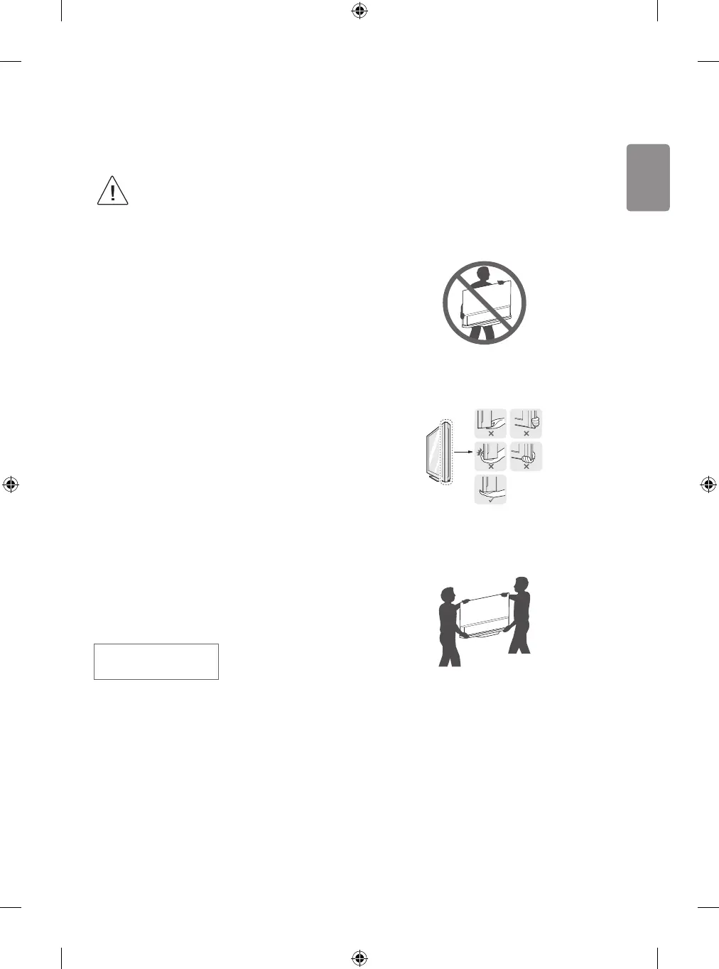 • When transporting a large TV, there should be at least 2 people.