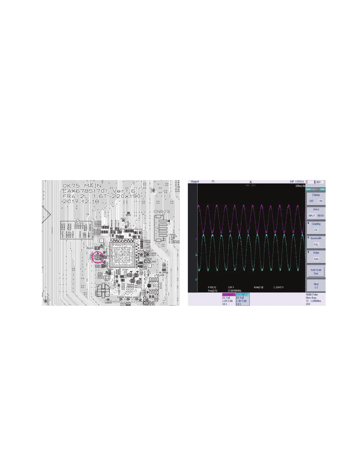 1) If 3.3 VA & 1.2 VA is normal, check reset ‘High’ of IC501 pin T12 on MAIN board.