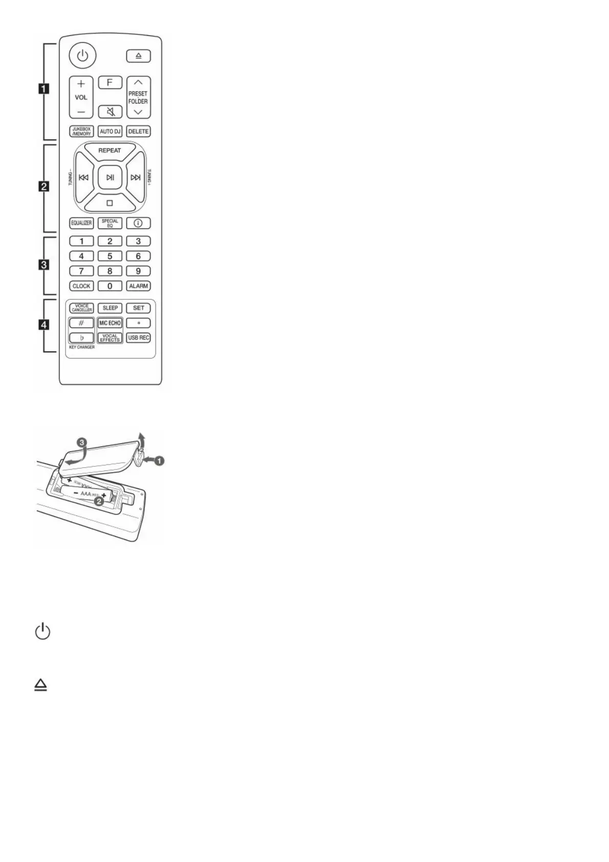 Remove the battery cover on the rear of the remote control, and insert the battery with (+) and (-)