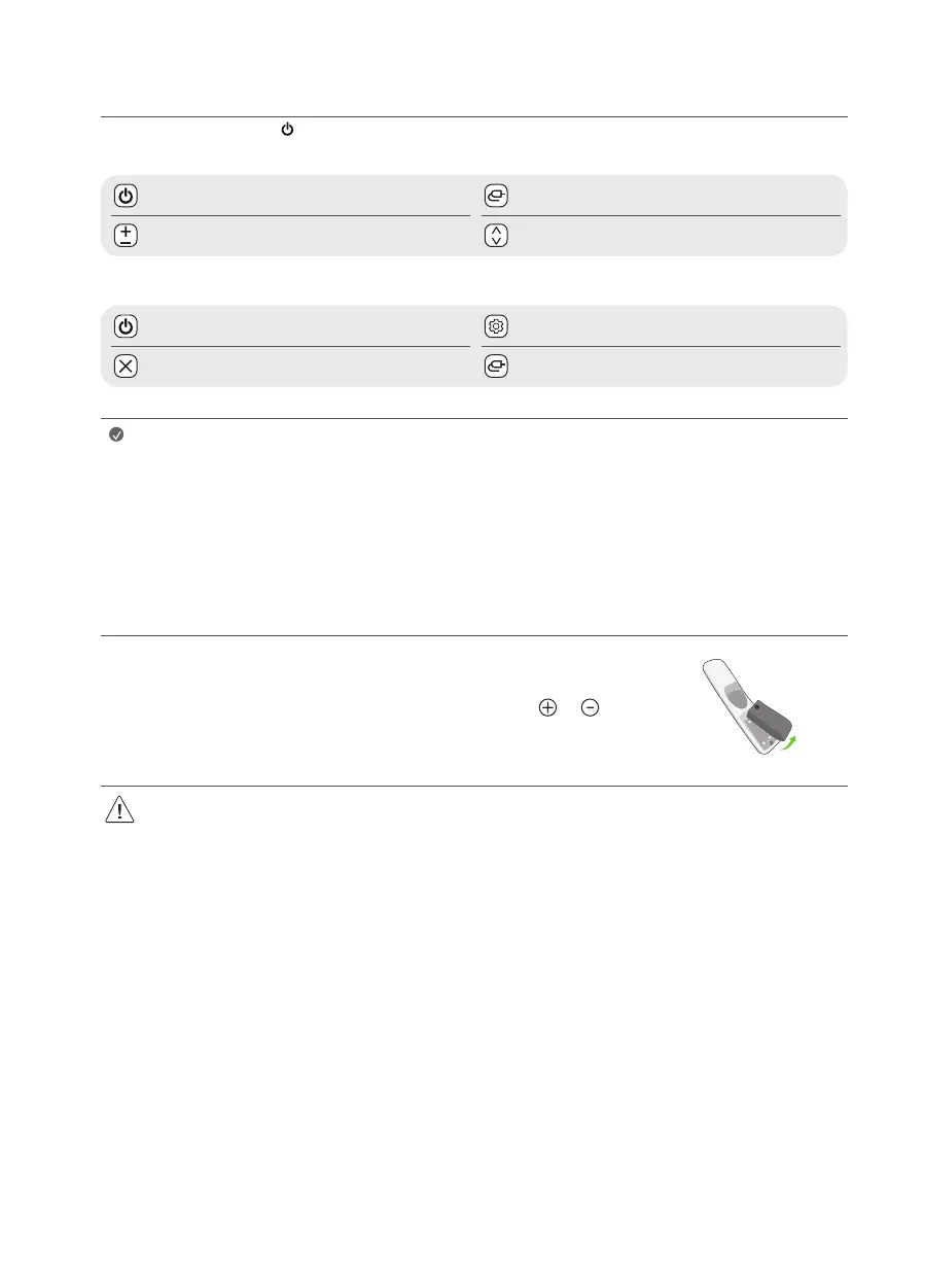 • Failure to match the correct polarities of the battery may cause the battery to burst or leak, resulting in fire, personal injury, or ambient