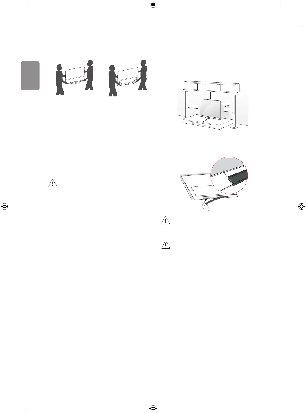 • When transporting the TV, do not expose the TV to jolts or excessive