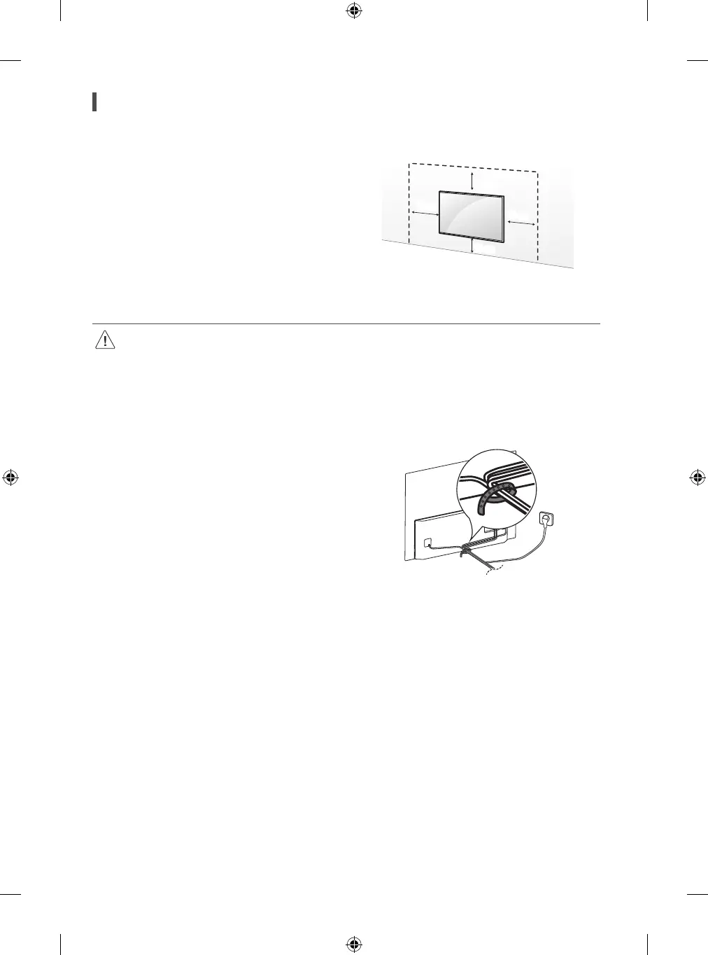 • When mounting a TV on the wall, make sure not to install the TV by hanging the power and signal cables on the back of the TV.